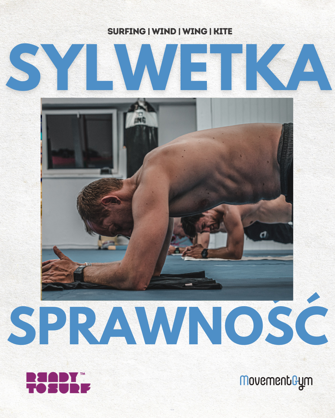 TRENINGI GRUPOWE W GDAŃSKU. DLA KAŻDEGO SURFERA/SURFERKI Zajęcia grupowe są zaplanowane pod kątem osób pływających na deskach wodnych, każdego rodzaju. Core to ćwiczenia z programu szkoleniowego READY TO SURF. Doświadczenie trenera Piotra Szwieca, umożliwia treningi osobom chcącym usprawnić i wzmocnić swoje ciało, w ogólnym tego słowa znaczeniu. Siłowym, sylwetkowym i sprawnościowym. Także bez aspiracji wodnych. Znajdziecie tu elementy: – Treningu siłowego i motorycznego – Kalisteniki – praca z masą własnego ciała – Animal Flow / Jogi / Stretchingu – poprawa zdolności ruchowych, równowagi, zakresów ruchu.
